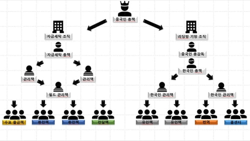 통역팀·앱 개발팀·전화상담팀·자금세탁팀 등으로 세분화된 구조로 운영됐다.