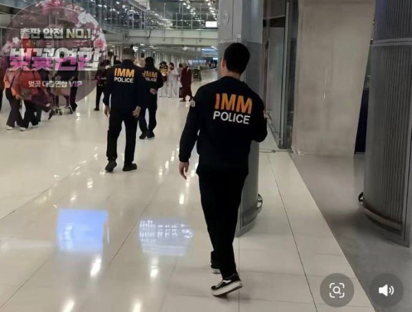 입국 시 세관 통로를 이용할 때 "IMM POLICE" 검은 제복을 입은 사람을 만나면