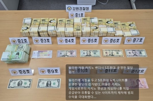 필리핀 기반 5조원대 카지노 벤더 조직 검거 영상·게임머니 직공급한 초대형 도박망 적발 > 해외뉴스