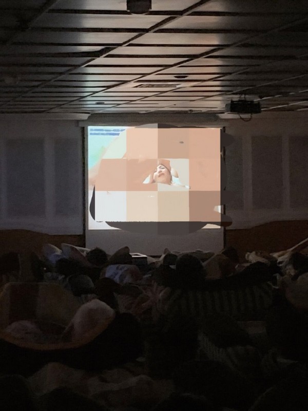 대만 남성전용 사우나 에서 대형 스크린으로 성인 방송
