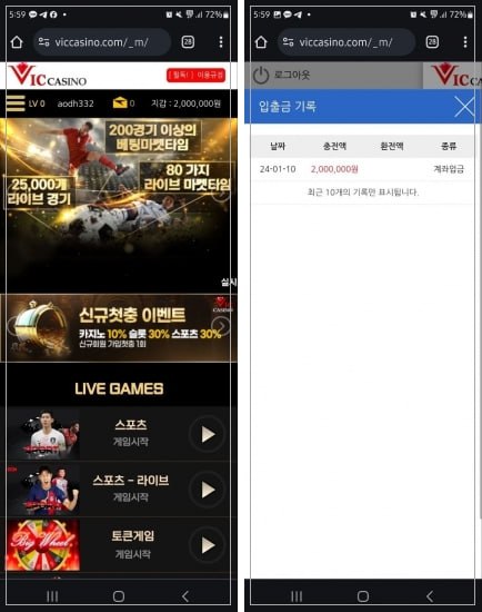 빅카지노에서 200만원 충전 후에 돈따서 환전신청하니